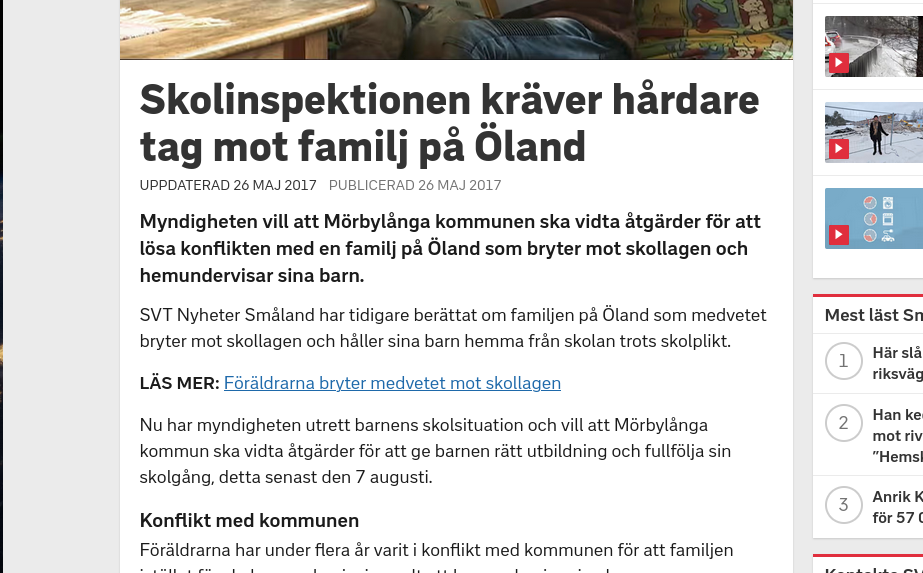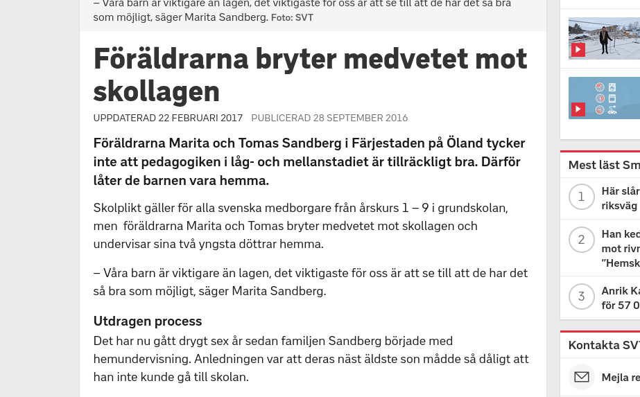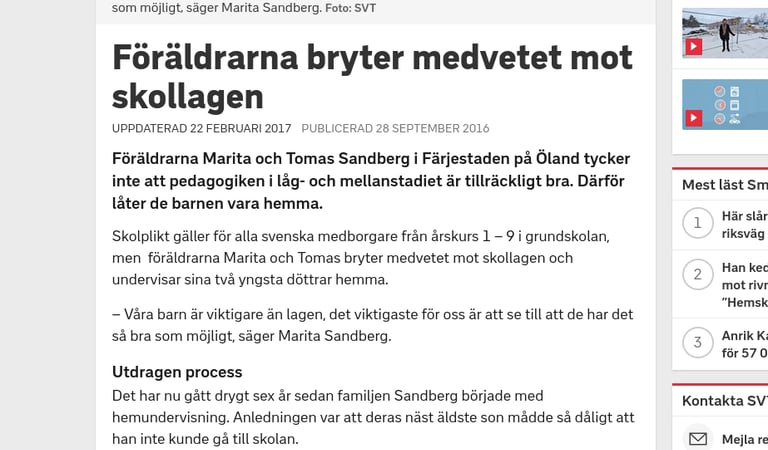 Serie artiklar om hemundervisning SVT - 2016