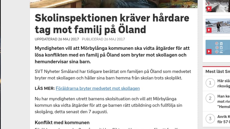 En av artiklarna i en serie om en hemundervisande familj och svårigheterna för dem som väljer denna skolform i Sverige. Klicka dig vidare till nästa artikel direkt på SVT:s webbsida.